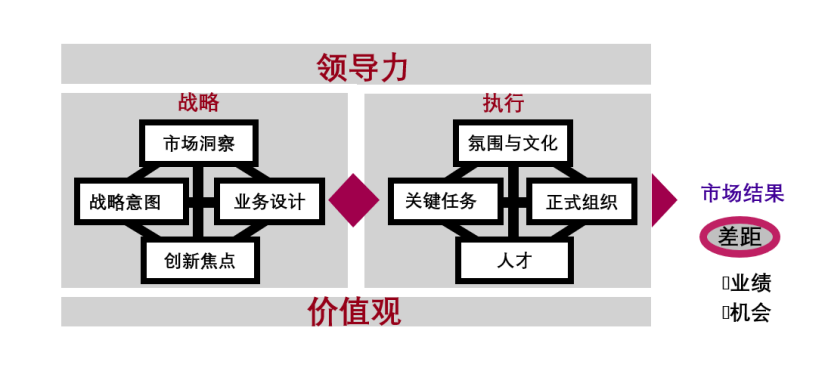 战略思考可以参考BLM模型,通过分析业绩和机会差距,探讨战略意图、市场洞察、创新焦点,确定业务设计和组织的关键任务,并以此审视组织、人才和文化。BLM是一种统一的框架和语言,通过这个工具,把模糊的目标识别出来,帮助组织找到方向,然后配备资源,上上下下正确理解和执行。