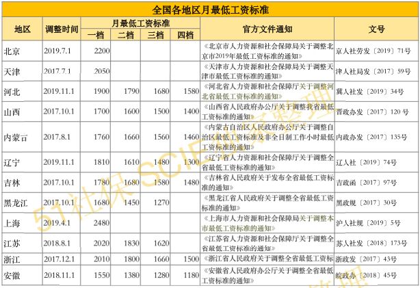 下面附上全国部分地区月最低工资标准,以供HR小伙伴们参考。