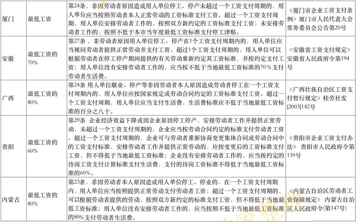 援引北京市发布的《北京市工资支付规定》第二十七条,非因劳动者本人原因造成用人单位停工、停业的,在一个工资支付周期内,用人单位应当按照提供正常劳动支付劳动者工资;超过一个工资支付周期的,可以根据劳动者提供的劳动,按照双方新约定的标准支付工资,但不得低于本市最低工资标准;用人单位没有安排劳动者工作的,应当按照不低于本市最低工资标准的70%支付劳动者基本生活费。国家或者本市另有规定的从其规定。